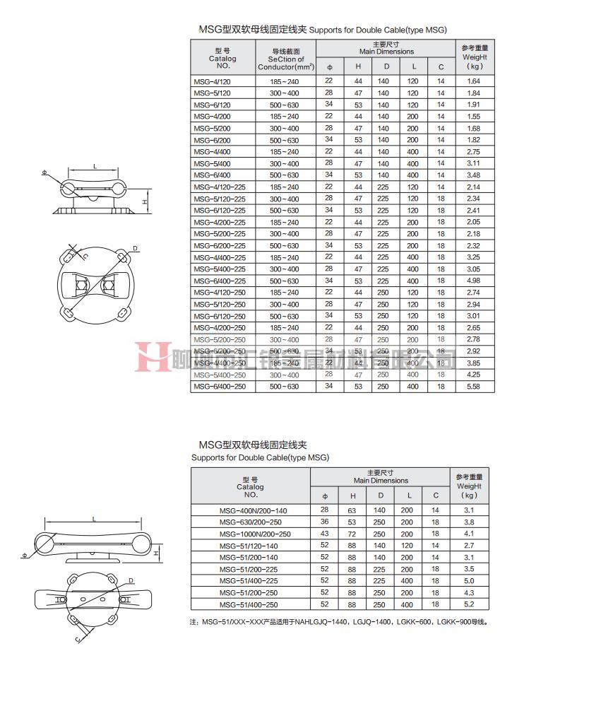 MSG型雙軟母線固定線夾